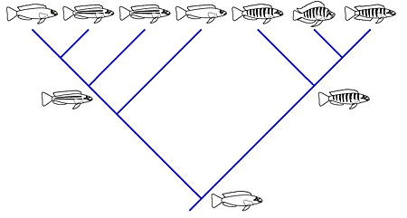 Fotografías de ciclídeos (Lamprologus callipterus, izquierda y Lepidolamprologus attenuatus, derecha) © Ad Konings y Cichlid Press. |