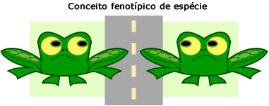 Segundo esse conceito, similaridade fenotípica é tudo o que importa no reconhecimento de espécies distintas. Desde que os sapos mostrados na figura acima tenham a mesma aparência — e mesmo que sejam impedidos de se acasalarem — eles seriam considerados da mesma espécie de acordo com o conceito fenotípico de espécie.
