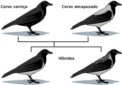 Além disso, muitas plantas e alguns animais formam híbridos na natureza. O Corvo encapuzado e o corvo carniça parecem diferentes e acasalam amplamente dentro de seus próprios grupos — mas em algumas áreas, eles se misturam e formam híbridos. Eles podem ser considerados da mesma espécie ou são de espécies diferentes?