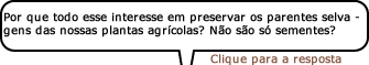 Os parentes selvagens possuem muitos genes que foram perdidos nas populações domésticas. Quando uma nova peste ou doença aparece, a população selvagem pode muito bem ser o local onde poderemos encontrar os genes que farão com que as plantas domésticas sejam resistentes aos intrusos.